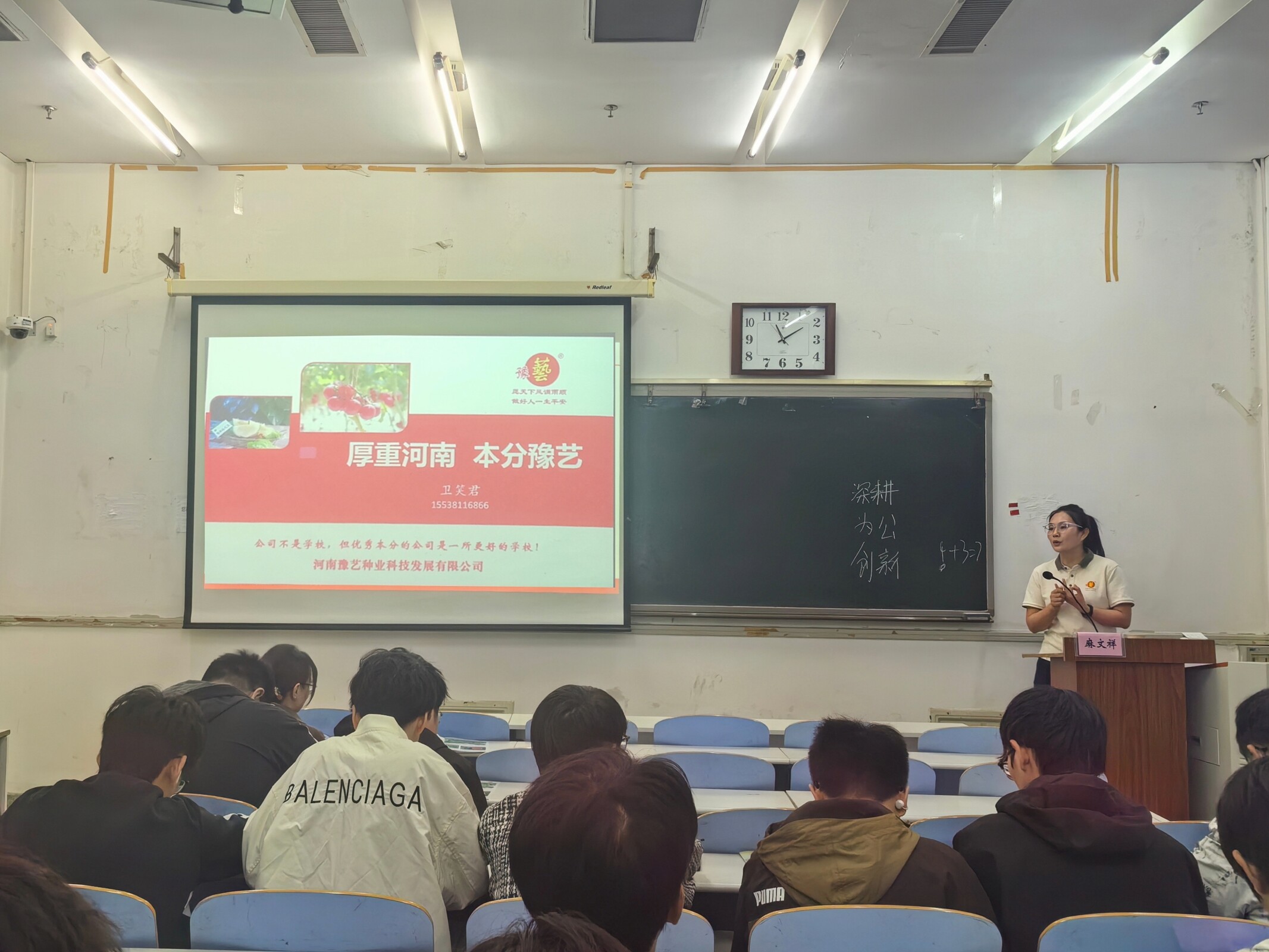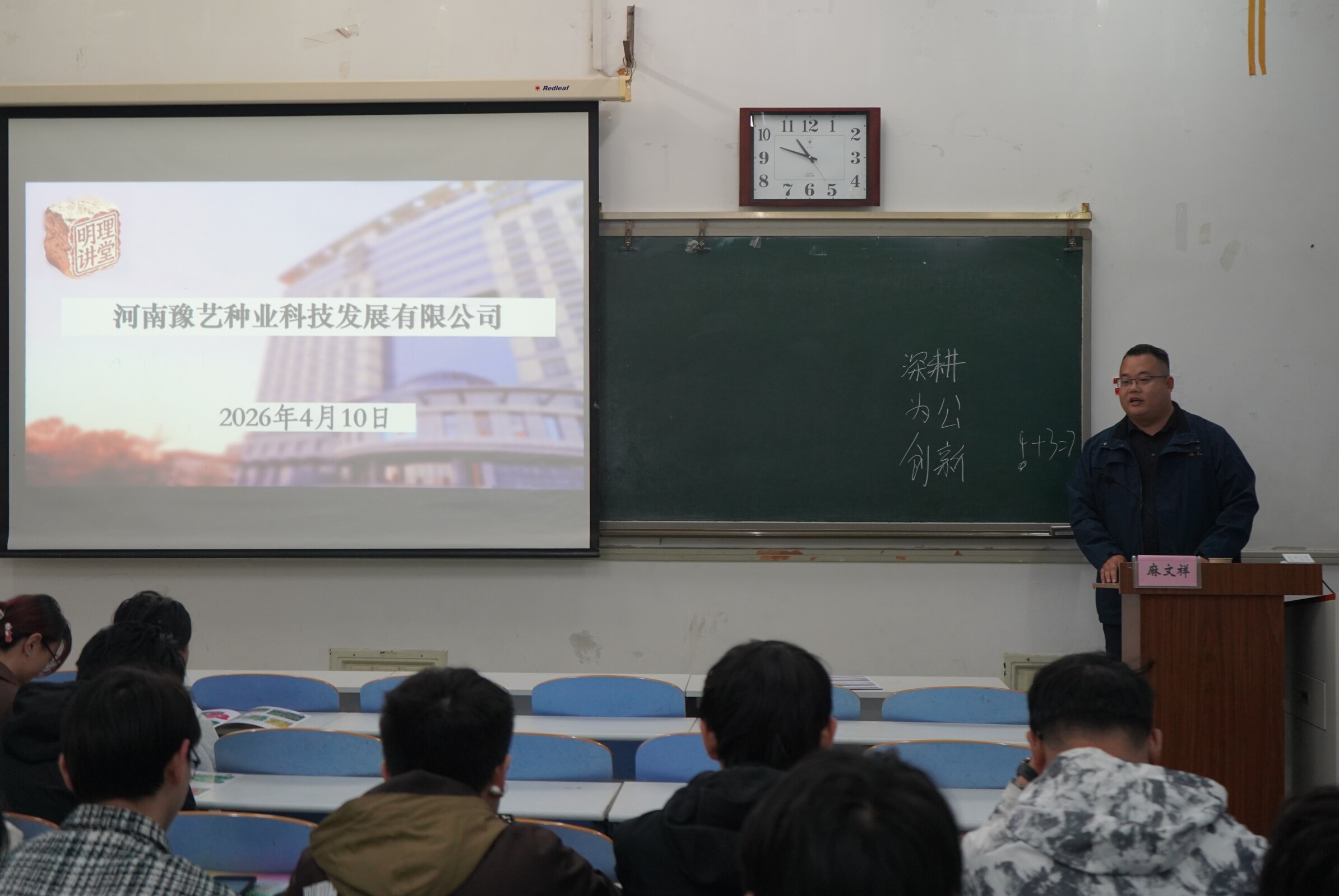 分享会上,麻文祥结合自身从农科学子到农业一线管理者的成长历程,围绕学业深耕、职业选择、行业发展三大核心维度展开分享。他回顾了在校期间的学习与实践经历,鼓励学生们夯实专业基础、重视实践能力,为职业发展筑牢根基。针对职业规划,他分享了从基层技术岗到区域经理的进阶经验,强调持续学习、责任担当与扎根一线的重要性,同时结合设施农业行业发展趋势,为学生们分析了农业领域的就业前景与发展机遇。在互动交流环节,他耐心解答了学生们关于实习选择、职业适配、行业发展等问题,用亲身经历为在校学子的成长发展提供了清晰指引。