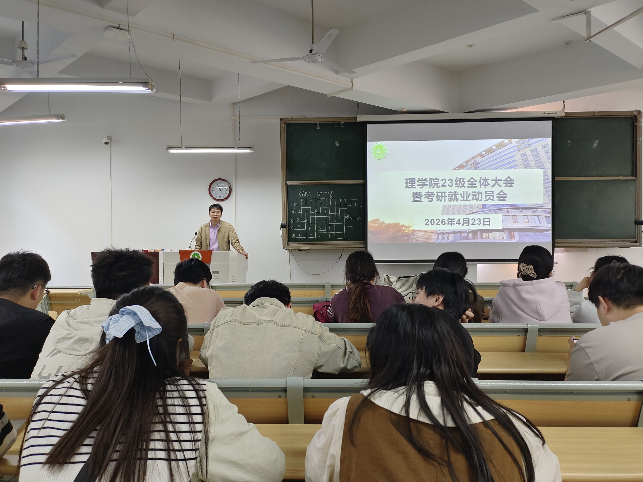 本网讯(通讯员 卢纯 王冰怡)为帮助23级学生明晰考研方向与就业形势,4月23日下午,我院于文化路校区桃李园学生公寓桃西楼204教室召开23级全体大会暨考研就业动员会,院团委副书记王卫楠担任主讲,23级全体学生参加。