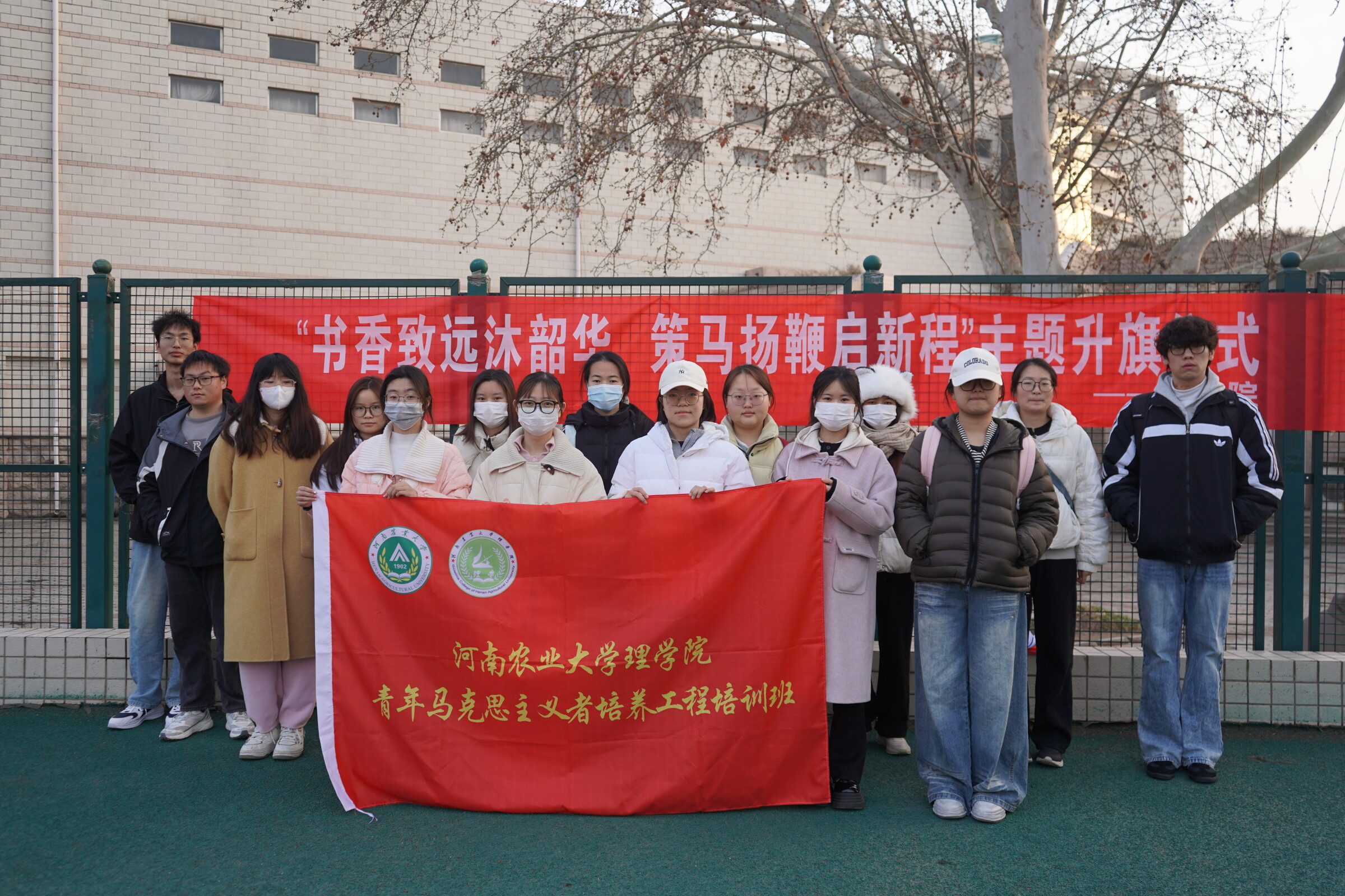 晨光映衬下,五星红旗冉冉升起,全体师生肃立行注目礼,齐唱国歌。学生代表李聆瑜结合《习近平与大学生朋友们》一书分享学习感悟,号召同学们以书为炬,勤学善思、知行合一,在笃学笃行中融入时代需求,努力成为堪当重任的时代新人。学院党委副书记黄婉珺在讲话中对全院师生提出三点期望:希望学子以“书香润心”为源,既要明理增信,更要树立大志,在深读细悟中汲取真理力量;勉励同学们以“实践立身”为行,既要学以致用,更要知行合一,在服务大局中锤炼过硬本领;号召教师以“育人为本”为魂,既要带头读书,更要融入思政,在言传身教中引领青年成长为有理想、敢担当、能吃苦、肯奋斗的新时代英才。仪式结束后青马班成员合影留念。